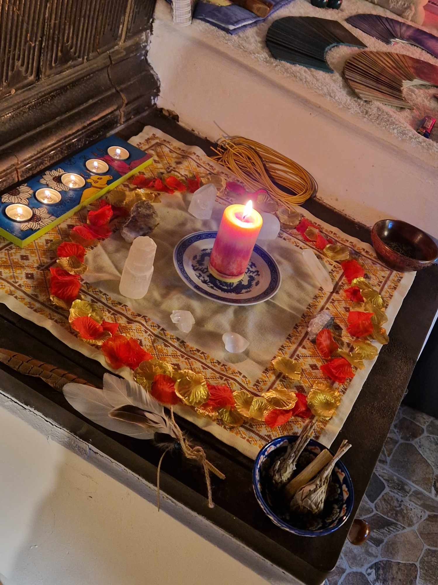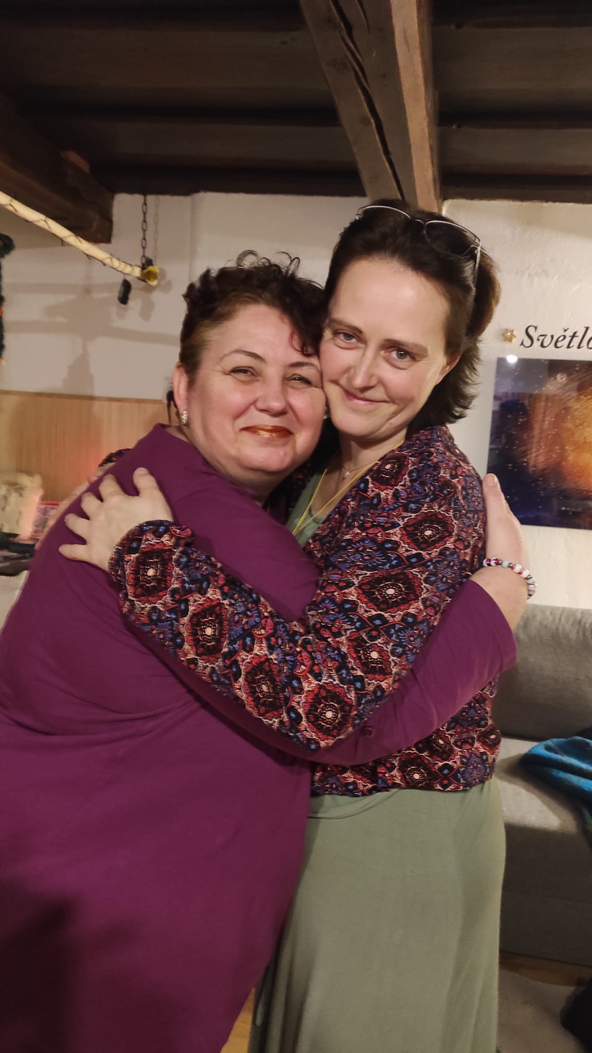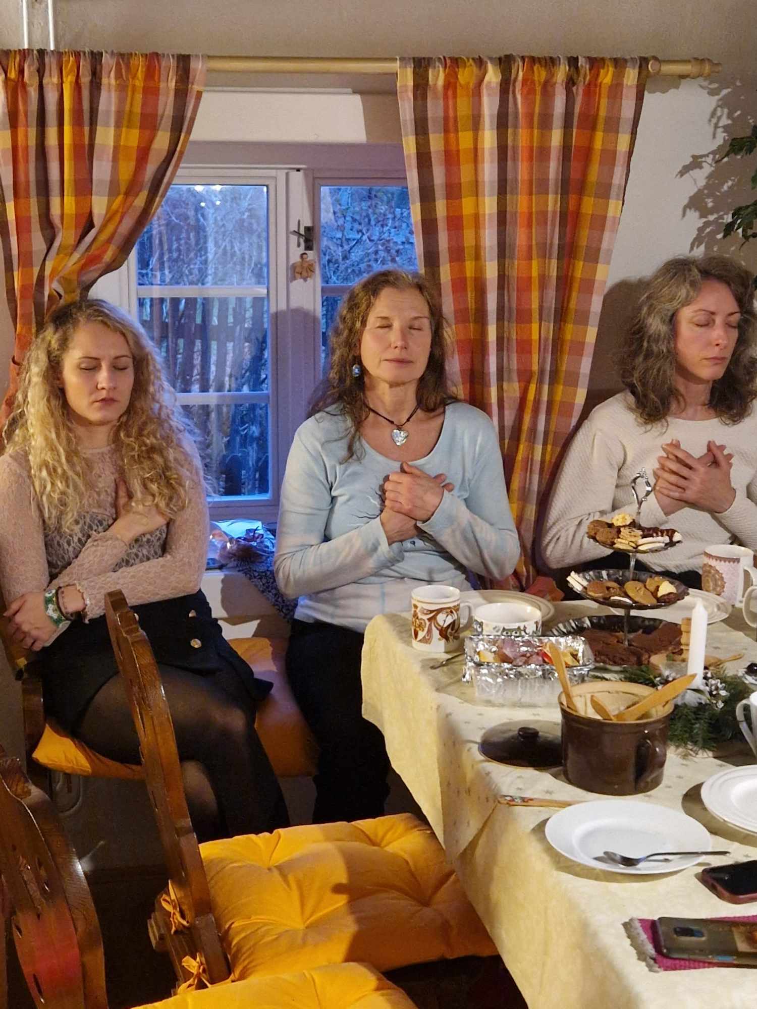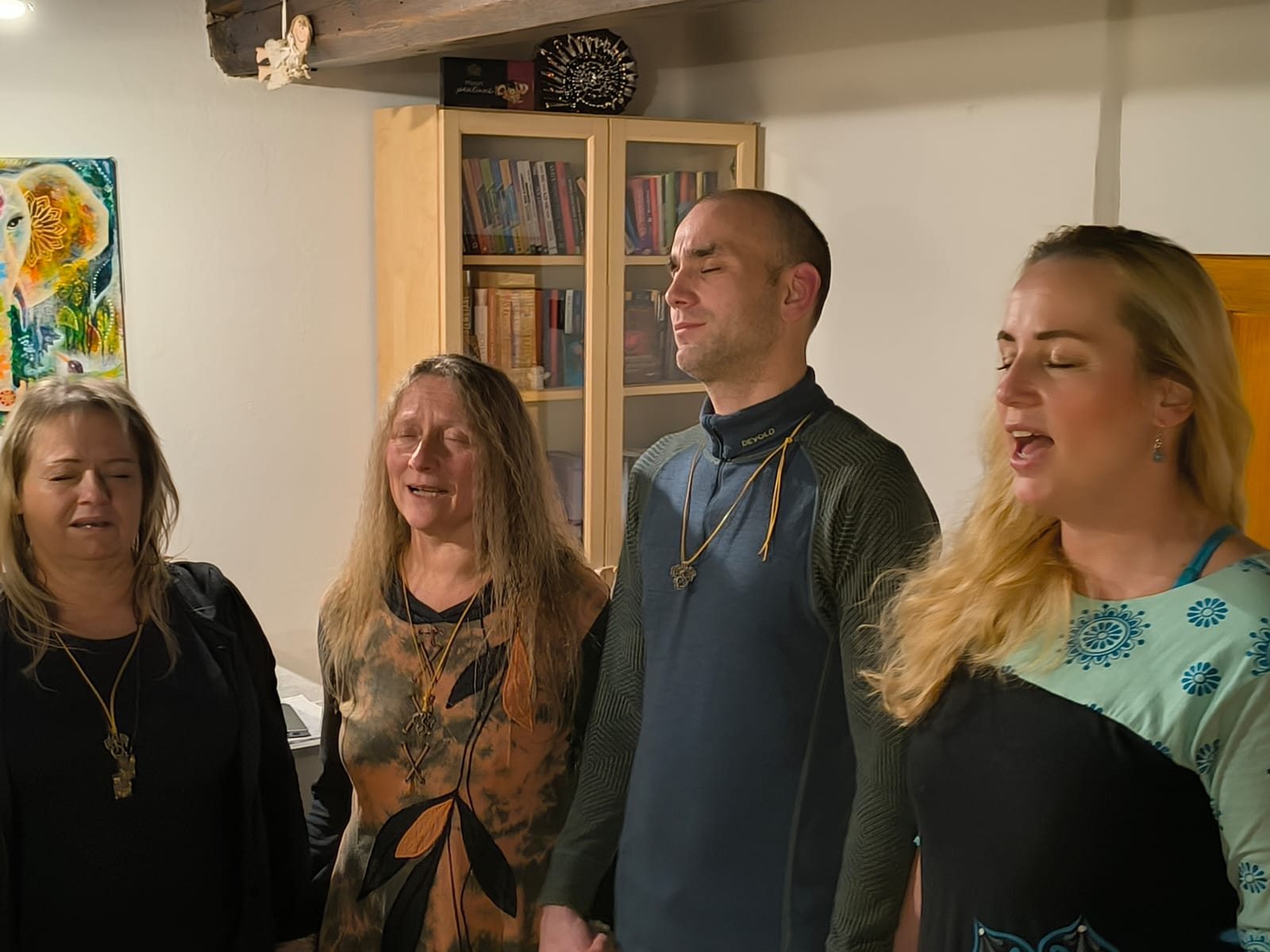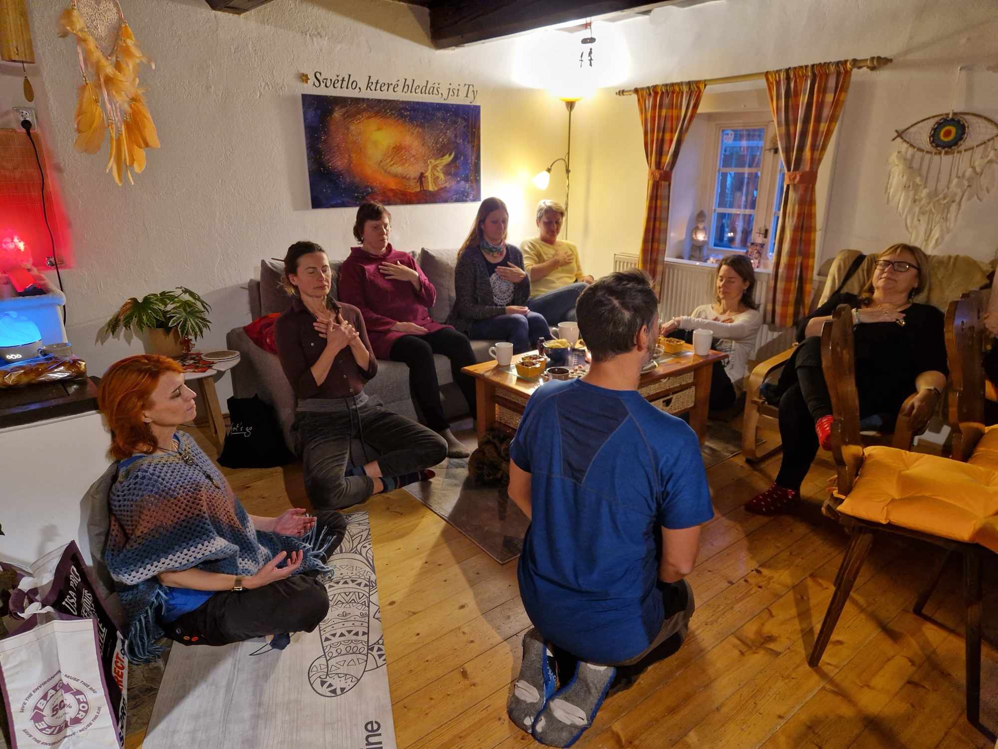 Jsem vděčná, že jsem se postupně naprosto uvolnila a vše si užívala. Pohledy do očí, do našich duší, mě zbavily veškerých obav. V kruhu tak úžasných žen jsem vnímala jen přítomný okamžik. Největší radost jsem měla ze zpěvu manter. To vzájemné propojení, ta blaženost! Takové tvoření jsem nečekala. Čas se zastavil...